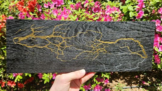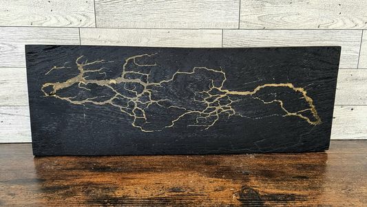 Product details for Fractal Wood Burning African Wenge, Black and Gold 16.5"x6".